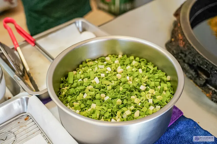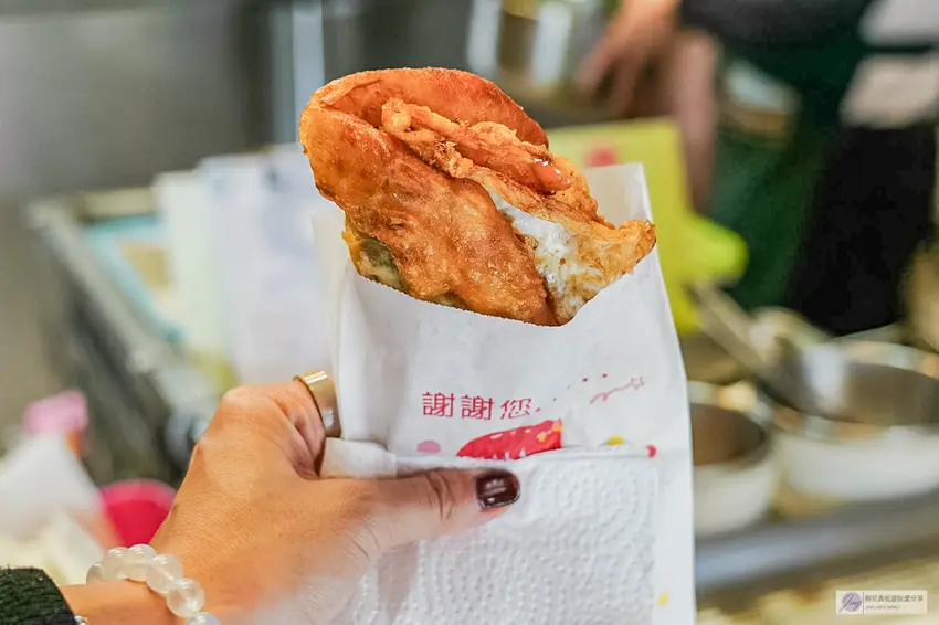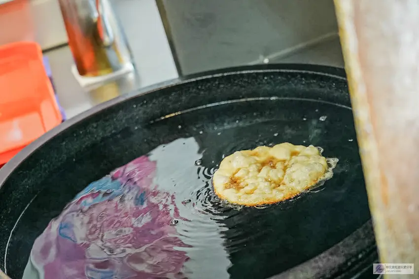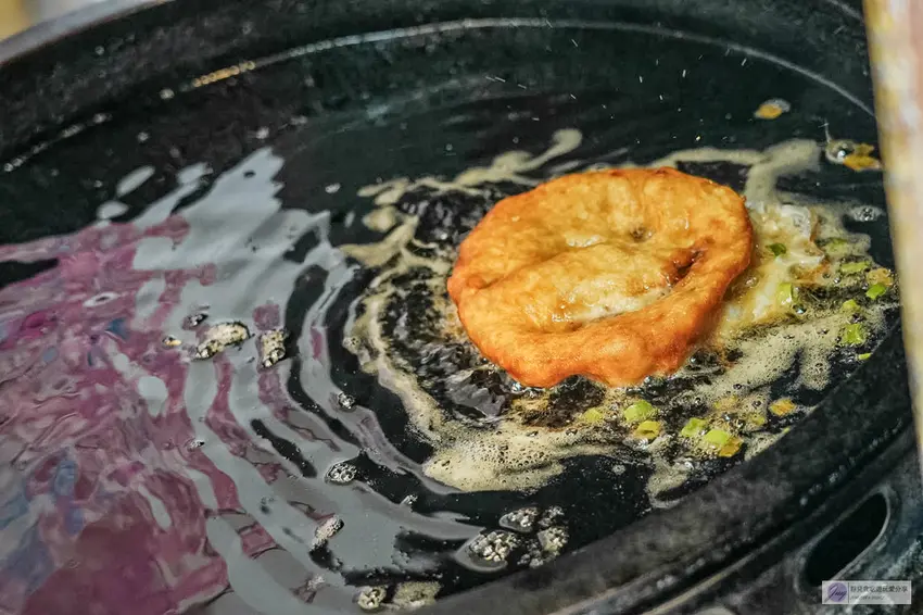 這裡的蔥油餅堅持採行現點、現揉、現炸的繁瑣工序,確保每一份餐點都能呈現最佳口感。有別於市面上將麵團擀至極薄的做法,店家的麵團刻意保留了些許厚度。放入高溫油鍋中以半煎半炸的方式處理時,麵團會迅速膨脹,形成充滿空氣感的獨特外觀。隨後打入新鮮雞蛋,並豪邁地抓起大把翠綠的宜蘭在地三星蔥一同下鍋酥炸。蔥段在高溫熱油的激發下,瞬間釋放出極其濃郁的天然蔥香,與金黃酥脆的餅皮交織出令人食指大動的絕佳賣相。