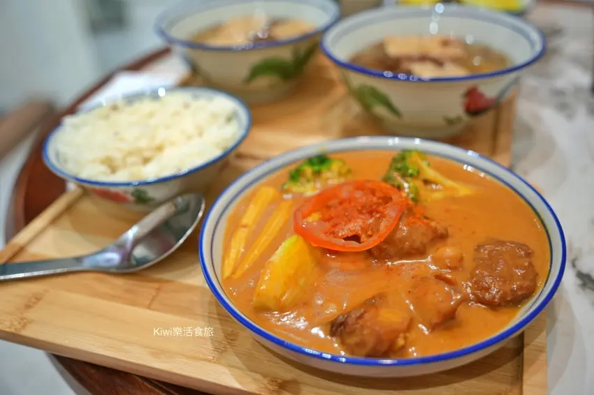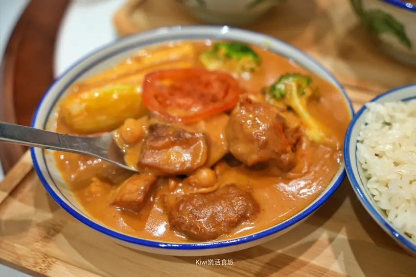來到熱浪小島,絕對不能錯過店內極具代表性的招牌「南洋咖哩飯」。這道料理以金黃閃亮的誘人色澤吸引目光,濃郁的咖哩醬汁完美包覆著每一粒米飯。入口的瞬間,溫潤且香氣四溢的椰奶風味率先在口腔中綻放,緊接著是南洋香料特有的微辛辣感緩緩浮現。多層次的味覺交織,宛如一場華麗的香料圓舞曲,徹底顛覆了傳統素食料理口味單一的刻板印象。飽滿紮實的米飯吸附了滿滿的醬汁精華,不僅帶來了極高的飽足感,更讓品嚐蔬食成為一種極致的享受,充分展現了南洋料理的熱情魅力。