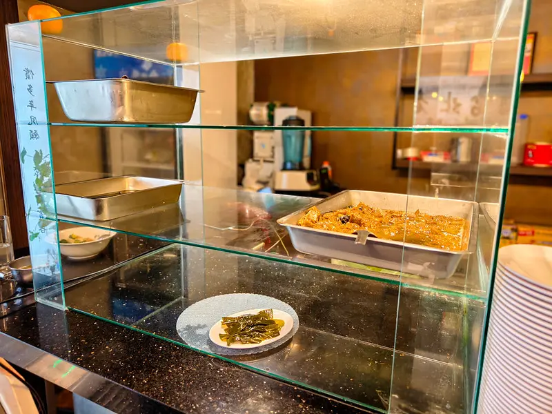 在餐點的定價策略上,台北老芋麵館展現了極高的性價比。豐富的菜單涵蓋了各式麵食、經典上海菜飯以及多款江浙特色的精緻小菜,平均每人只需花費100至200之間,便能獲得相當飽足的用餐體驗。踏入店門的瞬間,便能看見玻璃櫃內整齊排列著各式每日現作的特色小菜。然而,由於店內生意極其熱絡,許多熱門的經典小菜往往在用餐尖峰時段過後便會迅速售罄。因此,若想品嚐到最齊全的江浙涼菜品項,強烈建議顧客務必提早抵達,以免面臨品項完售的向隅之憾。
