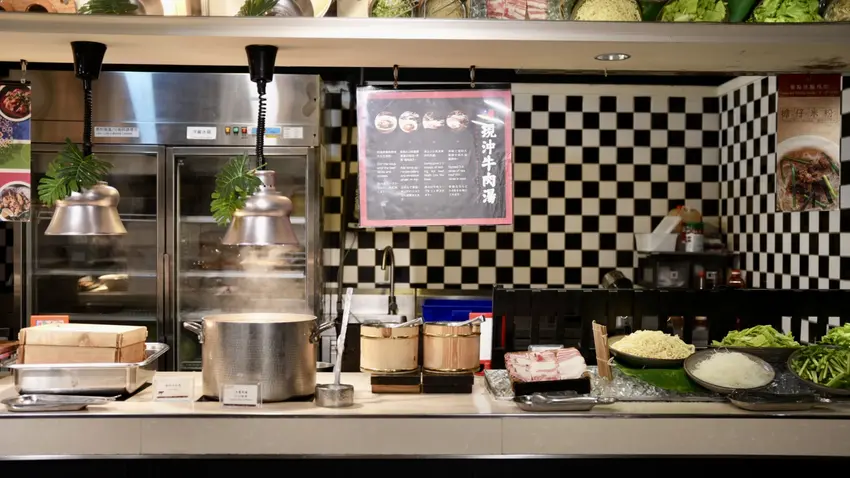 吃到飽最喜歡喝現沖牛肉湯,台南特色的牛肉湯,將新鮮牛肉放入碗中,沖入熱湯燙熟牛肉,湯頭清甜暖胃,搭配薑絲剛剛好。