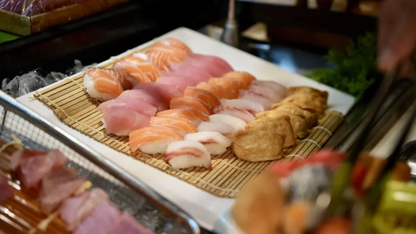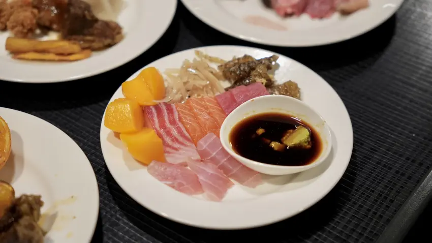 吃到飽當然要吃很多海鮮,這裡的海鮮都蠻新鮮~我個人最愛的是生魚片,鮭魚生魚片切的有點厚度,入口鮮甜軟嫩的口感,油脂感很豐富,吃起來也蠻新鮮的唷!