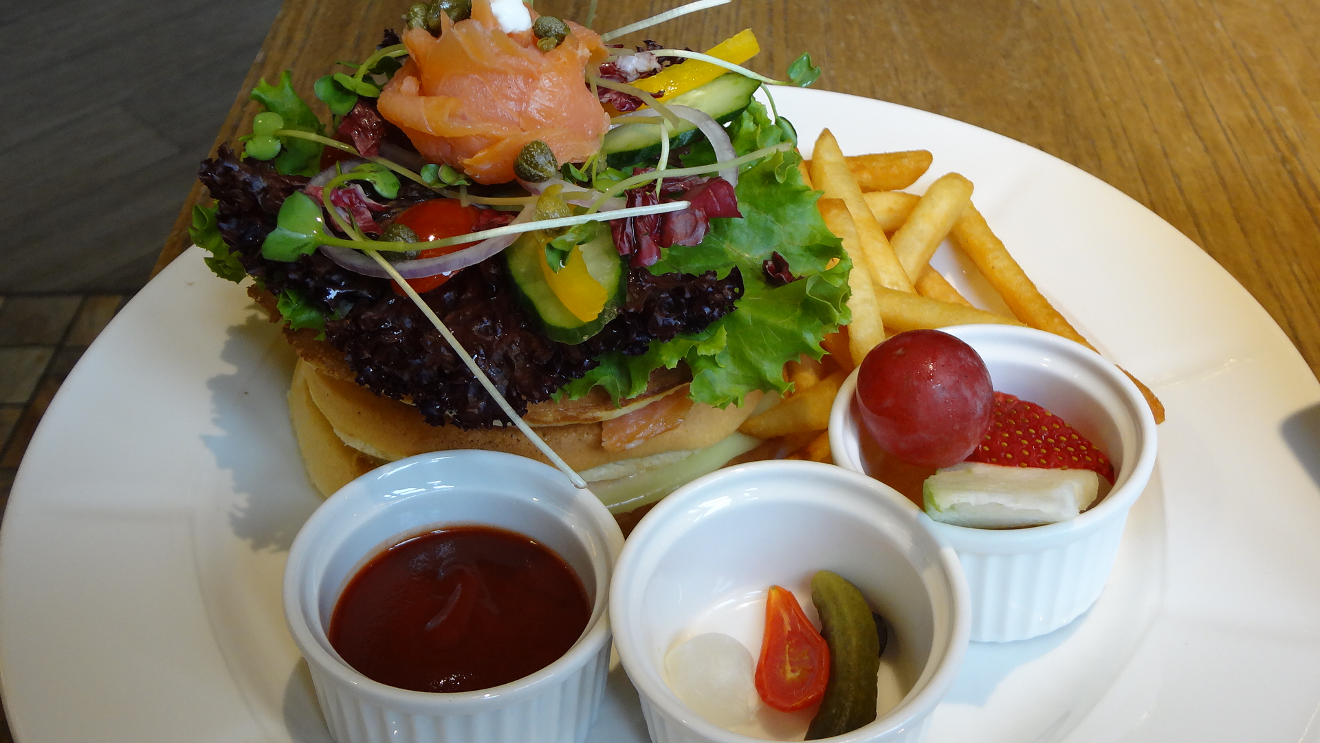 於是我選擇先將最上方的燻鮭魚花朵吃掉