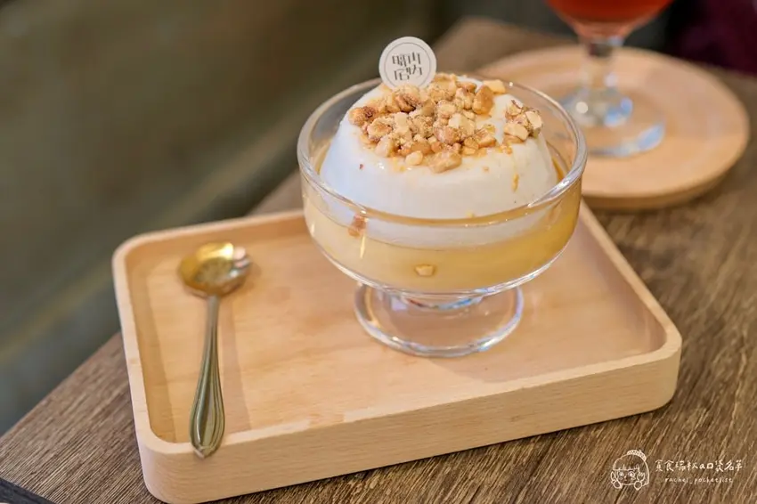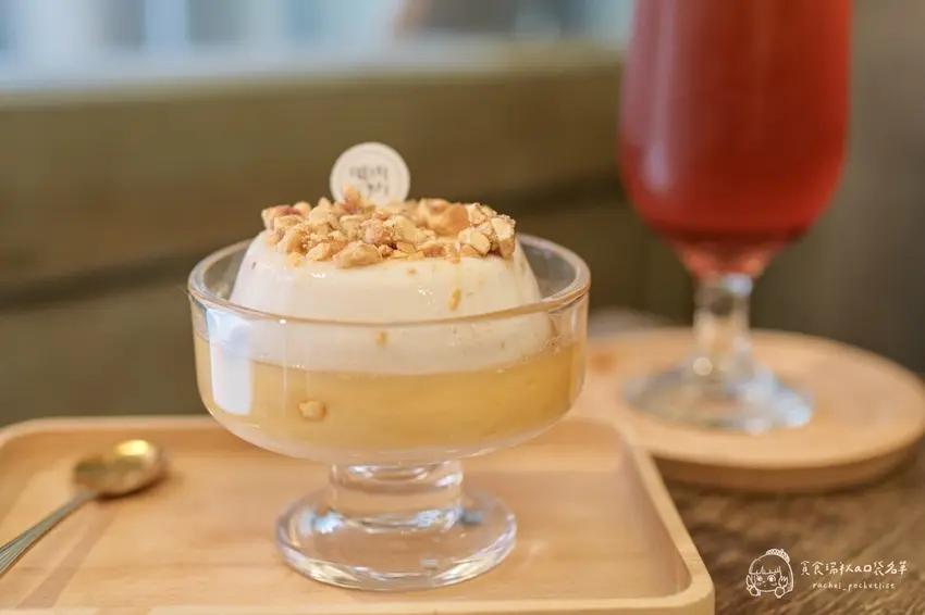 店內最具代表性的招牌甜品,莫過於將北港在地名產發揮得淋漓盡致的「花生豆花」。有別於市面上常見以黃豆作為基底的傳統豆花,這款特色甜品徹底顛覆了既有認知,完全以濃郁的花生為主體製作而成。其質地極其細緻柔順,入口時不僅能感受到宛如布丁般的滑嫩Q彈,更能品嚐到醇厚天然的堅果香氣。上方巧妙撒上香脆的碎花生粒並淋上甜度適中的特製糖水,讓整體的味覺層次與香氣不斷向上堆疊,是一碗連重度花生控都會一試成主顧的極致療癒系甜點。