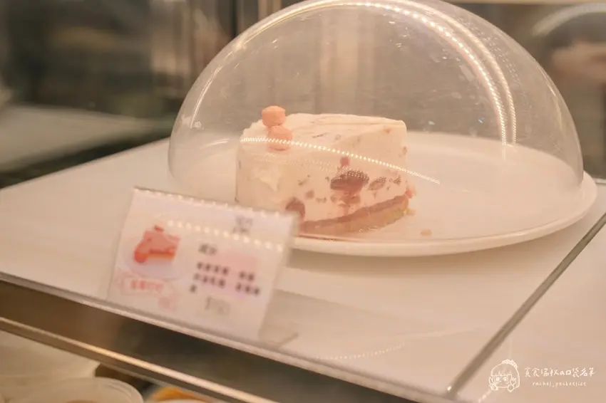 在精緻的西式糕點部分,名為「雷夢奶奶」的檸檬乳酪蛋糕是極受歡迎的清爽系選擇。這款蛋糕的乳酪主體口感極度細緻滑順,精準拿捏的檸檬比例帶來了自然清新的酸香,絲毫不會產生過度刺激的嗆鼻感。最令人驚豔的巧思在於其表層的處理,主廚特別撒上糖粒並經過高溫炙燒,形成了一層帶有迷人焦香的薄脆焦糖殼。當酥脆的表層與綿密的檸檬乳酪在口中交織,恰到好處的酸甜平衡完美化解了乳酪可能帶來的膩口感,是一款極具深度且相當耐吃的質感糕點。