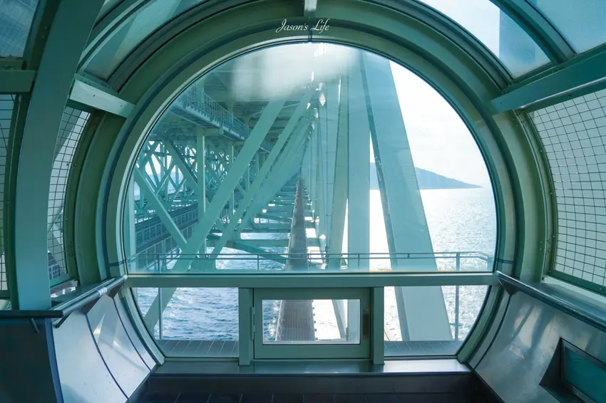 購票進入的「舞子海上步道」設置於大橋橋墩內部,是一處距離海面約 47 公尺的特殊觀景空間。走進展望室,最吸睛的莫過於腳下的透明玻璃地板,能讓人以俯瞰視角直擊瀨戶內海的翻湧海流,體驗高度與空間感交織的強烈震撼。步道內部同時設有詳盡的橋樑工程展示區與舒適的景觀餐廳,且全區皆為室內設施,完美隔絕了夏日酷暑與冬季的強勁海風。設施全年開放時間為上午 9 點至傍晚 18 點,黃金週與暑假期間更延長至 19 點,讓旅客能從容地飽覽這片壯麗的蔚藍海景。