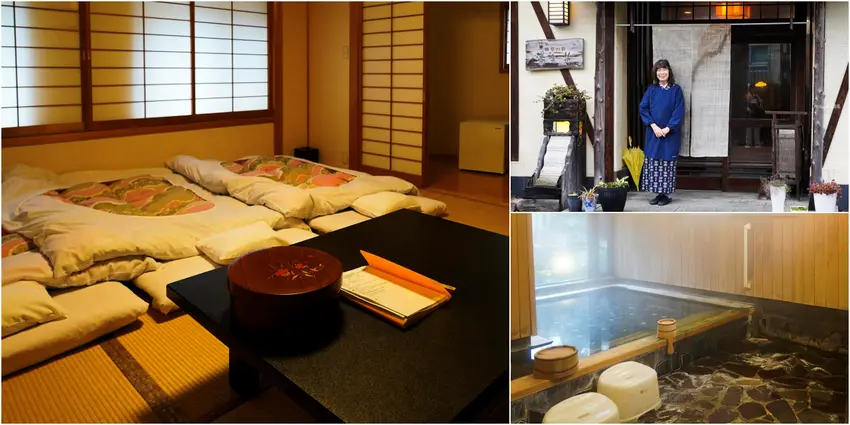在住宿選擇上,極度推薦隱密且溫馨的日式老宅旅館「摘草之宿 湯菜花」。全館僅規劃 3 間寬敞的傳統榻榻米客房,每日限量接待 2 組旅客,營造出極簡且不受打擾的私密空間。旅客能以親民的價格,免預約直接包場享受源泉掛流的私人美肌湯屋。漫步於溫泉街道上,還能發現深受在地人與觀光客喜愛的「天然足浴溫泉葦湯」。這座免費開放的戶外足湯,底部特別鋪設了圓潤的玉石,旅客可以在浸泡富含礦物質的溫泉時,一邊踩踏石頭進行足底穴道按摩,達到雙重的放鬆與美肌效果。
