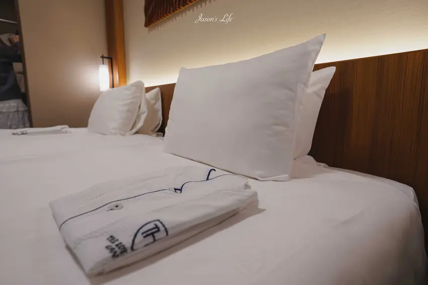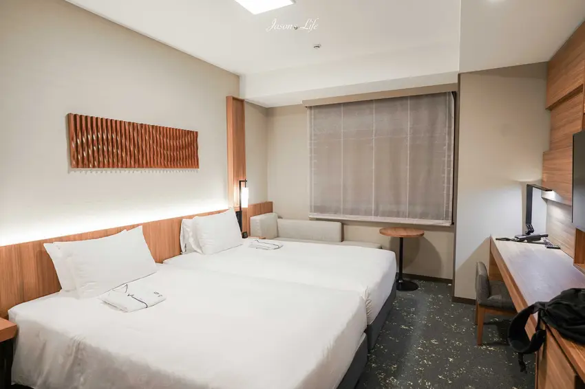 在客房規劃上,飯店主要提供雙人房與雙床房等多元選擇。以 25.7 平方公尺的高級雙床房為例,房內採用溫潤的簡約木質調設計,搭配柔和的燈光配置與高品質床墊,為旅客帶來極佳的睡眠品質。儘管位於寸土寸金的市中心,房內的空間利用卻極具巧思。寬敞的開放式衣櫃備有充足的衣架,下方空間更可將大型行李箱完全攤平集中,絲毫不會產生壓迫感。此外,房內標準配備涵蓋了免治馬桶、空氣清淨機、保險箱與附設檯燈的實用辦公桌,完善的機能規劃,充分滿足了觀光與短暫辦公的雙重需求。