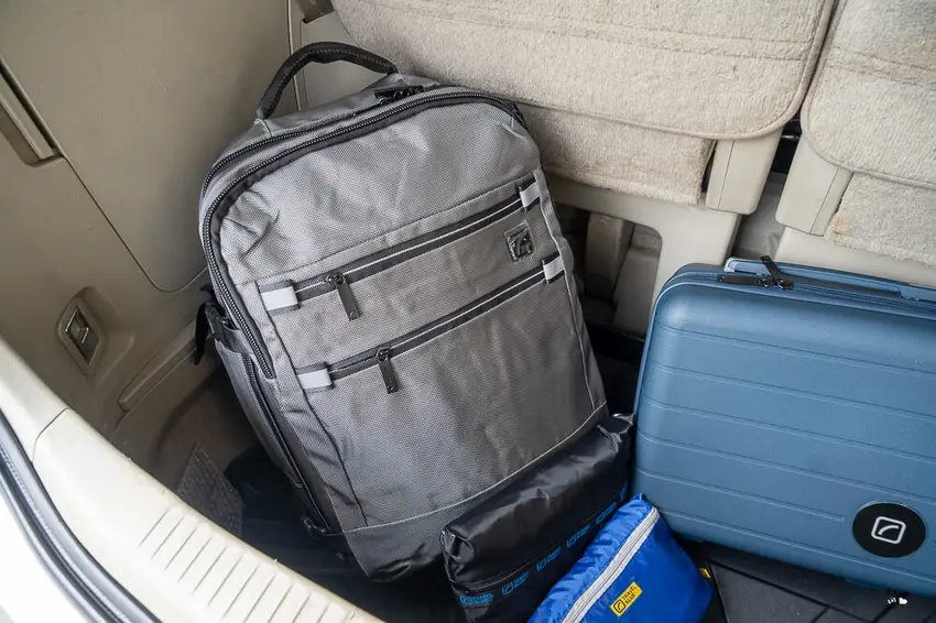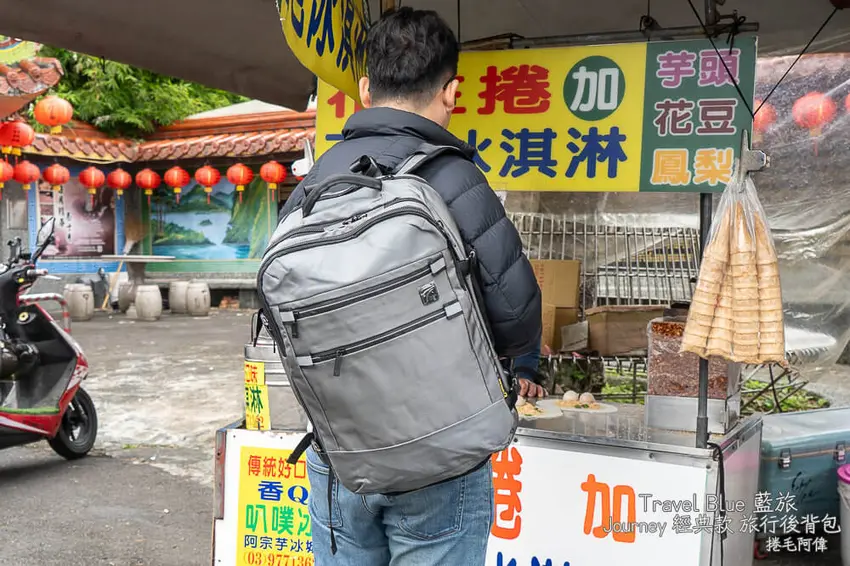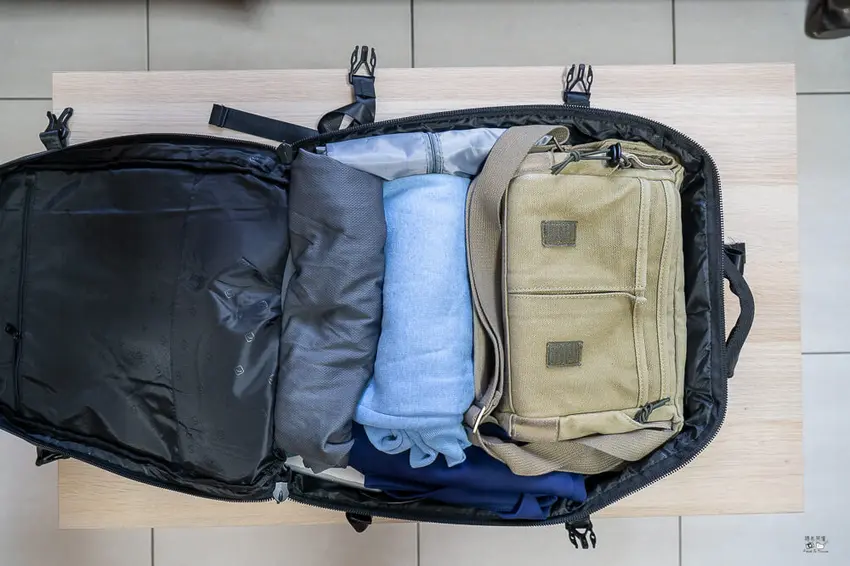 「Travel Blue Journey 經典款旅行後背包」主打 35 公升的海量收納空間,其方正挺拔的包型設計能最大化地利用內部每一個角落。實際打包 4 天 3 夜的秋冬換洗衣物、隨身盥洗包以及專業的相機攝影器材後,內部空間依然游刃有餘。背包兩側貼心配置了堅固的安全插扣,不僅能依據內容物的多寡自由調節包身厚度,避免背包過度膨脹,更能有效鎖定拉鍊防止意外撐開,大幅提升了旅途中的防護安全感。這款背包的尺寸設計完美契合多數航空公司的客艙行李標準,讓旅客能真正實現免託運的輕裝旅行哲學。