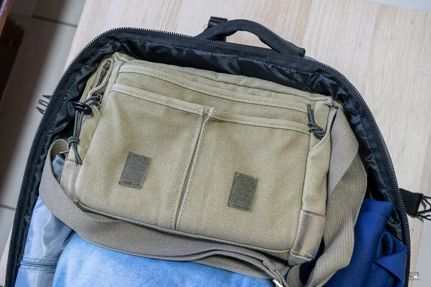 許多旅客在安排多天數的行程時,經常面臨需要攜帶第二雙替換鞋履,卻又擔心鞋底髒污沾染乾淨衣物的困擾。這款背包在底部極具巧思地規劃了專屬的獨立鞋子收納袋。這個隱藏式內袋直接向背包內部延伸,不僅能完美隔離鞋底的灰塵與泥土,維持主收納區的絕對整潔,也不會破壞背包外觀的俐落線條。若該趟旅程無需攜帶額外的鞋款,這個底部的獨立空間亦可作為收納髒衣物、雨傘或相機鏡頭包的彈性隔層,讓整體空間的運用達到極致的靈活與便利。