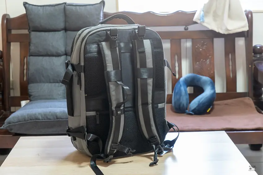 在長時間背負超過 10 公斤重物的情況下,背包的減壓系統便顯得格外重要。這款旅行背包採用了加寬加厚的肩帶設計,能將龐大的重量均勻分散至雙肩,大幅減輕肌肉的疲勞與痠痛感。貼近人體背部與腰部的位置,則全面鋪設了具備高彈性與高透氣度的減壓軟墊,即便在炎熱的天氣下長時間步行,也能保持背部乾爽不悶熱。更具巧思的是,在腰部透氣墊的後方隱藏了一處貼身的防盜拉鍊夾層,空間足以平放長型皮夾與護照,讓旅客在擁擠的觀光景點或大眾運輸上,也能安心保管最重要的個人財物。