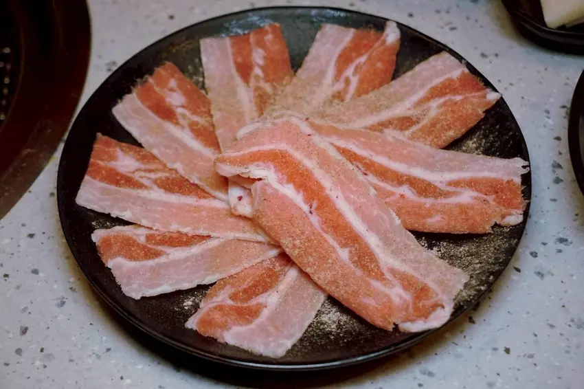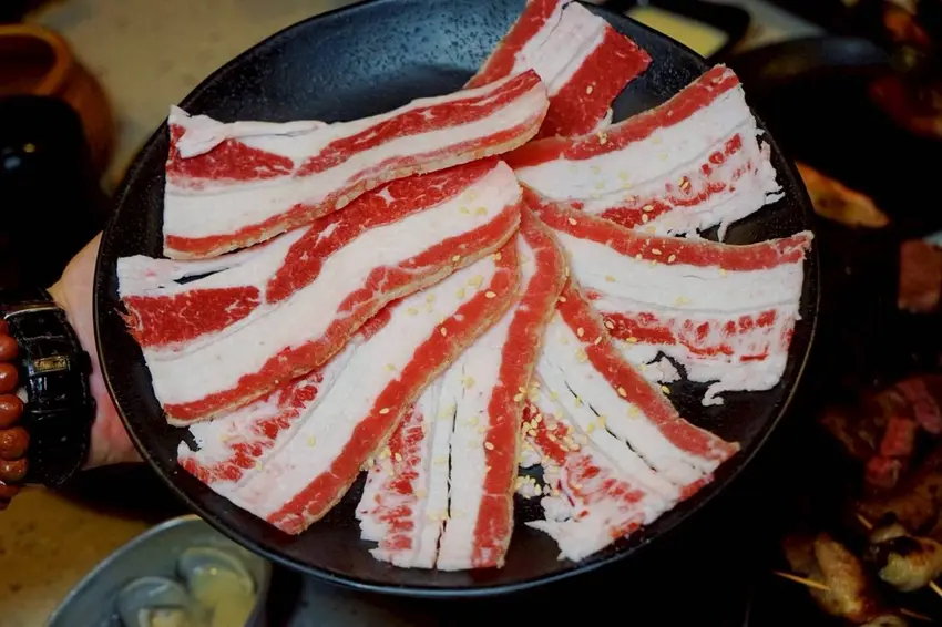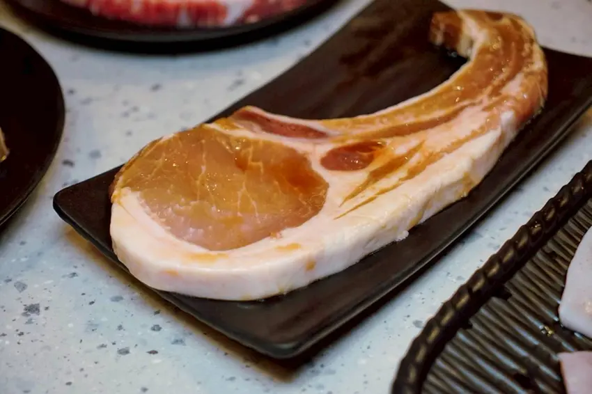 上選椒鹽豬五花,可以發現這邊的烤肉片厚度都比一般的肉片要來的有點厚度,其實這樣烤起來的肉吃起來也比較有口感呢