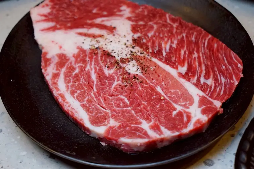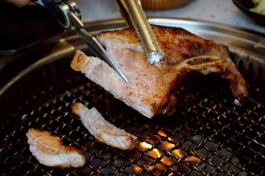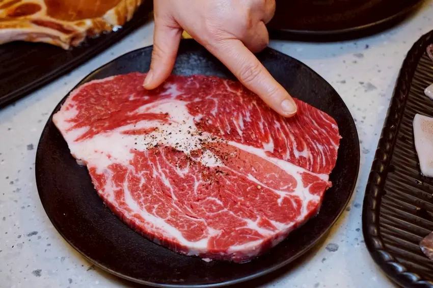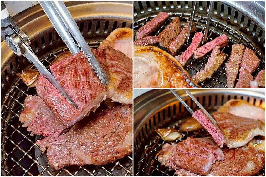 可以依照自己的喜好熟度來烤這安格斯16oz嫩肩牛排,再剪成方便入口的大小。每一口都能吃到軟嫩的肉質中帶著Q彈有勁的筋,口感層次十足,而且不油膩,吃起來既細緻又多汁,絕對是燒肉桌上最療癒的存在!