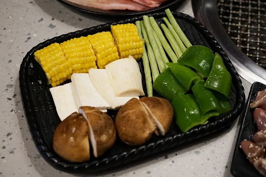 吃肉肉的當下,也要來點時蔬唷!青椒、玉米、香菇、杏鮑菇通通點起來!