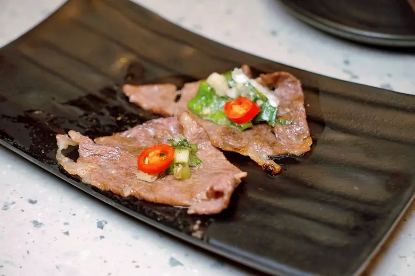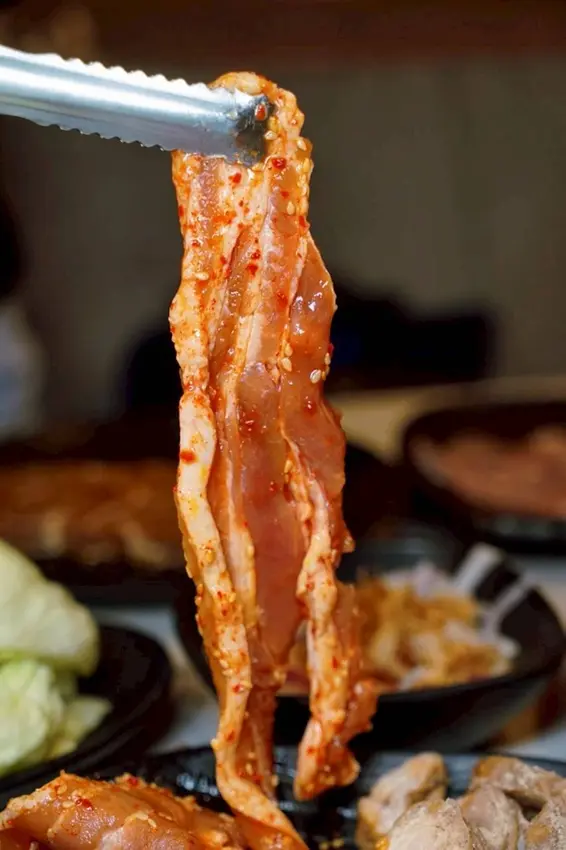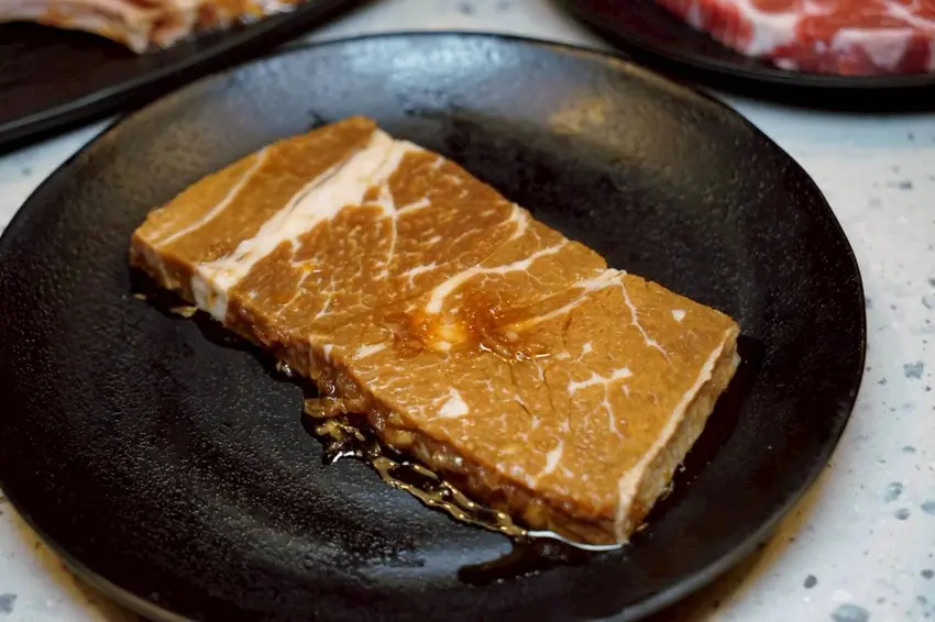 牛排鹹鹹甜甜、軟嫩多汁,每一口都讓人忍不住想再加點。它特別利用 水梨和洋蔥等天然食材的酵素來軟化肉質,同時帶出天然甜味,讓牛肉吃起來更加軟嫩香甜、風味層次豐富,絕對是燒肉桌上的超人氣推薦!