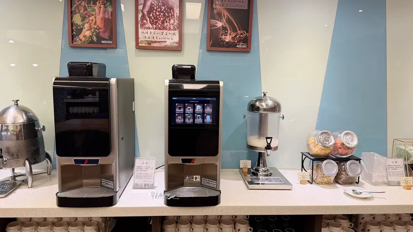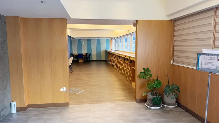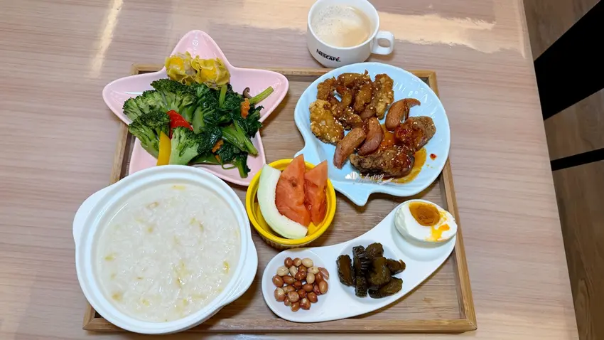 經過一夜好眠,旅客可於上午 7 點至 10 點 30 分(最後供餐時間為 10 點),前往飯店 2 樓享用豐盛的免費早餐,入場時只需報上房號即可。寬敞的用餐空間採光極佳,若能坐於窗邊還能悠閒欣賞早晨的城市街景。若逢連假過後等住房率較平穩的時期,飯店會貼心將自助餐改為精緻的個人套餐形式供應。套餐內容涵蓋地瓜粥、鹹鴨蛋、時蔬與多款經典配菜,並提供可續杯的香醇咖啡。自助吧檯區仍會常態供應各式麵包、小蛋糕、鮮奶、穀片與果汁,確保每位旅客皆能獲得滿滿的飽足感。
