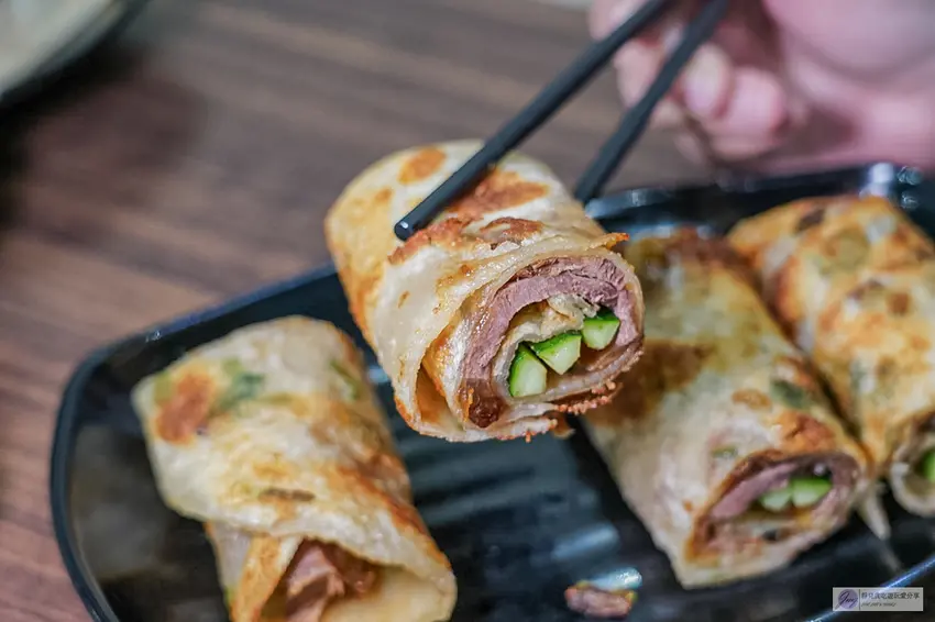 麵食愛好者必點的「牛肉捲餅」,其餅皮厚度拿捏得宜,表面煎至微酥焦香。內層包裹著鮮嫩的牛肉片與清脆爽口的小黃瓜,刷上靈魂般的特製香甜麵醬,外酥內嫩的層次感非常紮實。若喜愛飽滿口感,每日限量純手工製作的「芹菜鮮蝦蒸餃」絕對是不容錯過的亮點。帶有 Q 彈厚度的餃皮內,豪邁地包入了一整隻完整鮮蝦,並以新鮮芹菜與溫體豬肉點綴提鮮。淡淡的芹菜香氣完美襯托了海鮮的甘甜,搭配些許辣醬享用更能提升豐富的味覺層次。