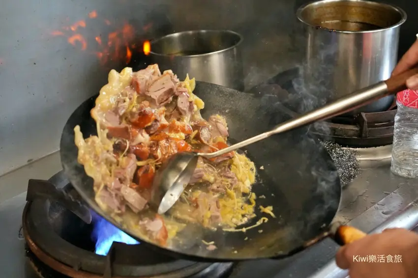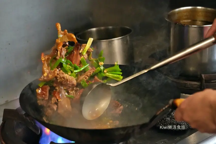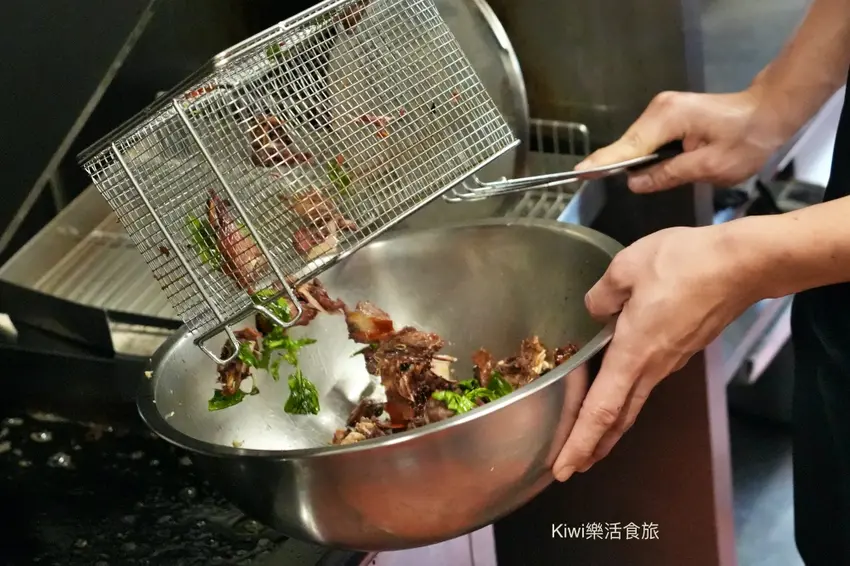 喜歡重口味的饕客,絕對不能錯過大火快炒的「醬炒鴨架」。師傅將蒜頭、辣椒與洋蔥入鍋爆香後,加入切塊的鴨骨大火翻炒,並淋上特調醬汁。醬汁被完美收乾並緊緊裹在鴨骨上,鹹香帶辣的濃郁滋味極度下飯。另一款「椒鹽鴨架」則是將鴨骨與大量的大蒜、九層塔一同下鍋高溫油炸。炸至乾爽酥脆的鴨架完全不顯油膩,咬下時會發出誘人的喀滋聲,土番鴨特有的油脂香氣搭配鹹香的胡椒鹽,美味程度甚至超越了傳統鹹酥雞,是極佳的下酒與解饞良伴。
