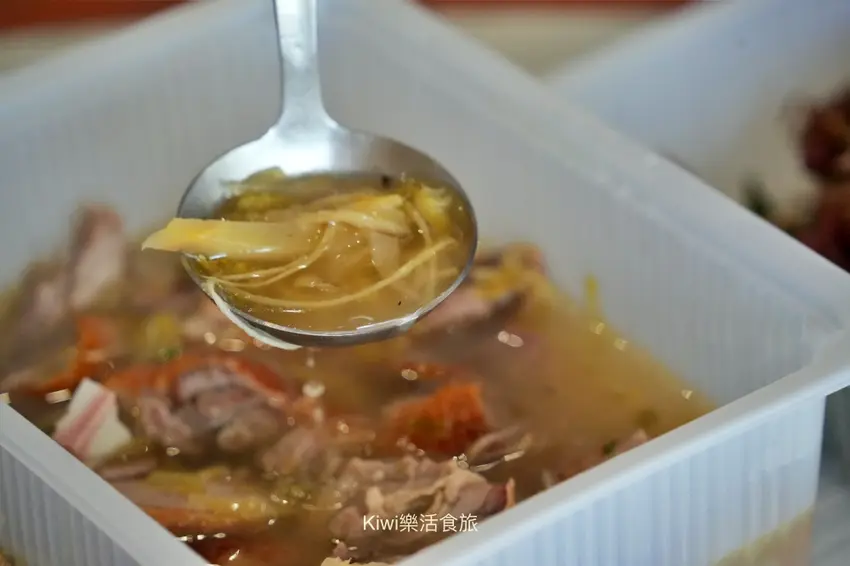 除了乾式的吃法,師傅熬煮湯品的功力同樣不容小覷。「酸菜鴨架湯」是將烤鴨精華完美釋放的溫暖之作。酸菜的酸爽韻味巧妙中和了烤鴨本身的油脂,讓湯頭喝起來濃郁鮮甜卻又極度清爽不燥熱。在品嚐完層次豐富的烤鴨後,喝上一口熱騰騰的酸菜湯,身心靈皆能獲得極大的放鬆與滿足。由於生意極佳且皆為現烤處理,強烈建議旅客務必提前透過電話預約,避免在尖峰時段向隅撲空,輕鬆將這份屬於嘉義民雄的頂級美味帶著走。