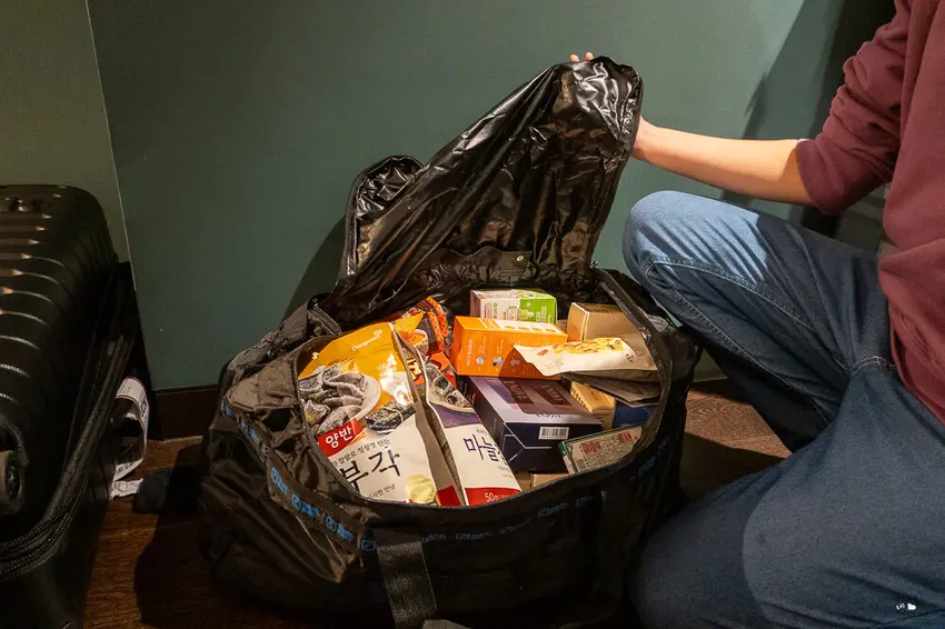 為了因應大容量的收納需求,摺疊袋在開口設計上採用了極為寬敞的拉鍊式帶口。這樣的設計不僅讓打包過程變得更加直覺流暢,即便是體積較大、形狀不規則的盒裝伴手禮或大型免稅品,也能毫無阻礙地輕鬆放入。堅固的拉鍊系統能有效防止物品在移動過程中不慎掉落,提供極佳的安全防護。舒適的雙肩背帶設計則能將重量均勻分散,即便裝滿了重物,依然能維持不錯的背負手感,是多人同行或家庭旅遊時不可或缺的重裝備收納利器。