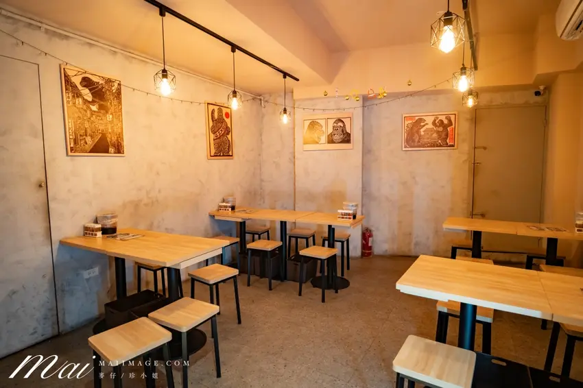 柒息地新莊中華店的地理位置極具優勢,距離捷運環狀線「幸福站」僅需步行約 10 至 15 分鐘即可抵達。若選擇自行驅車前往,建議可將車輛停放於步行僅需 3 至 5 分鐘的新莊體育館地下停車場,免去於熱門時段尋找路邊停車格的煩惱。走進店內,用餐環境相對寬敞舒適,昏黃的燈光營造出極度適合小酌放鬆的微醺氛圍。整間餐廳約可容納 35 人,座位間距寬敞不擁擠,無論是三五好友的小型聚會,或是學生與商務客的包場活動皆能完美勝任。牆面上更點綴了許多活潑的哥吉拉掛畫,為空間增添了不少童趣與討論話題。