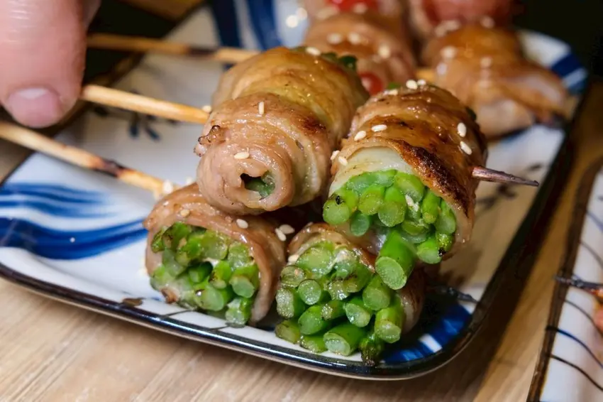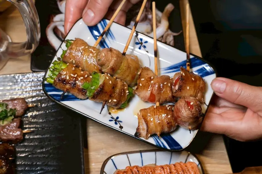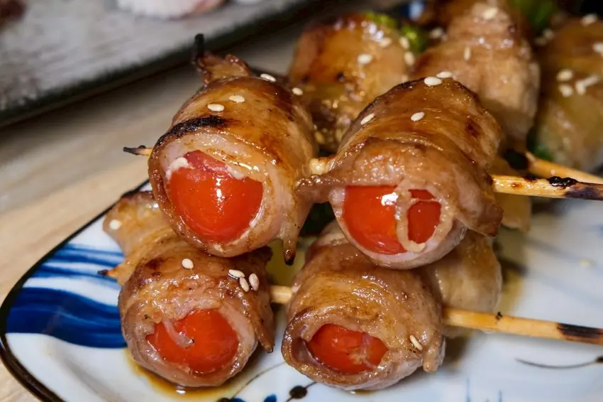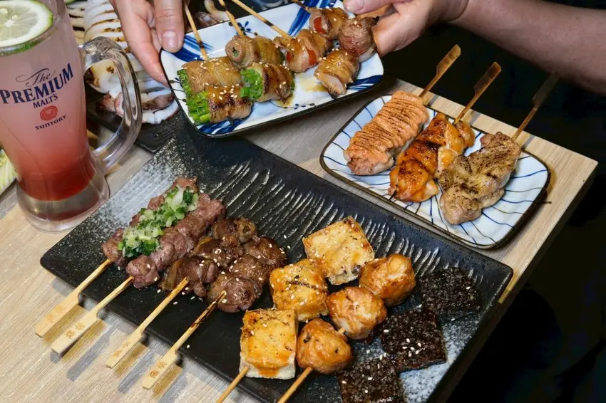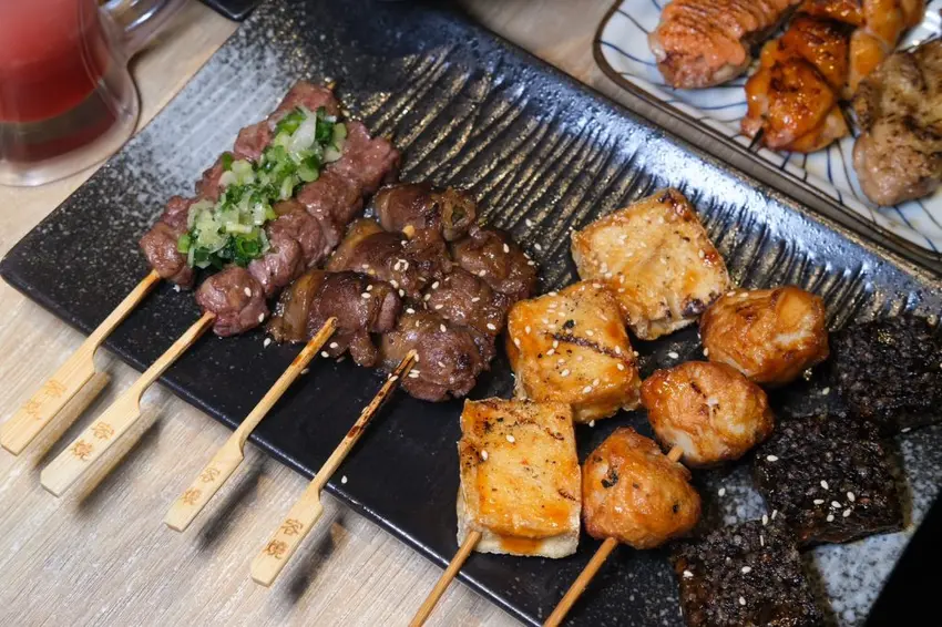 ▼每一份串燒烤物都是現點現烤,炭火成就出香噴噴的味道,可以吃到很多創意的品項,牛肉剝皮辣椒串鹹香夠味,相當多汁,豬肉番茄入口爆汁,吃起來酸酸甜甜很討喜,就連牛肉也處理得很好,Choice級的牛肋條肉質厚實鮮嫩,帶點筋的Q勁很好咬。