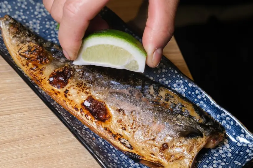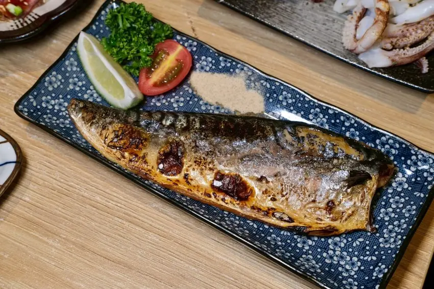 ▼整尾霸氣上桌的鯖魚,烤到外皮超級脆,一打開裏頭藏著肥美的魚肉,細緻無腥味!