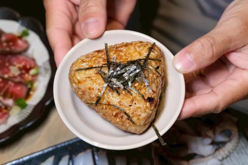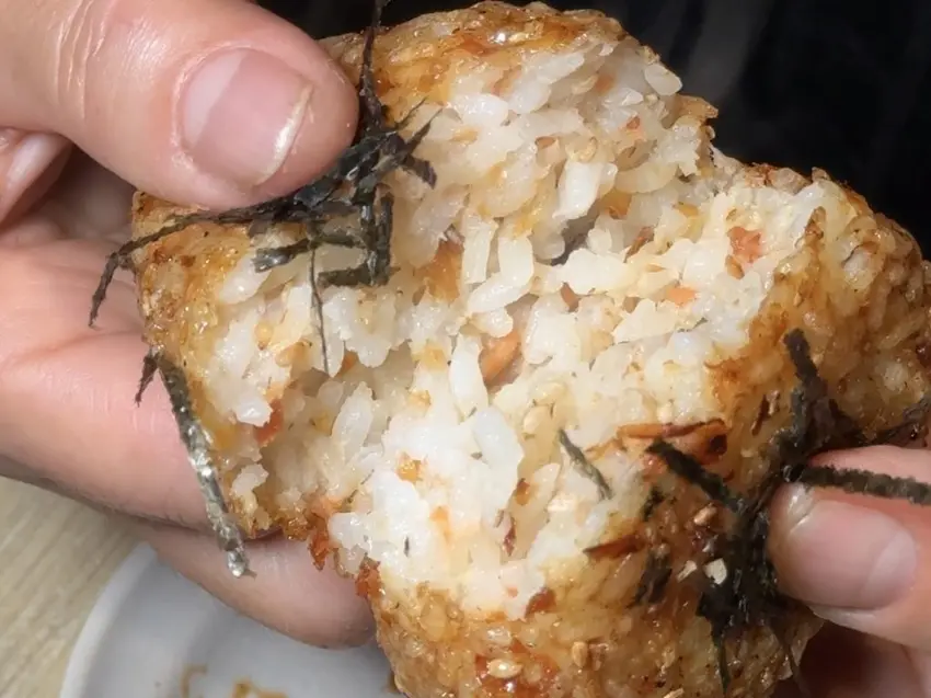 ▼烤得酥酥的鮭魚飯糰,一剝開裏頭竟然藏著鮭魚肉,口感厚實鹹香,每一口都吃得到鮭魚的鮮香!