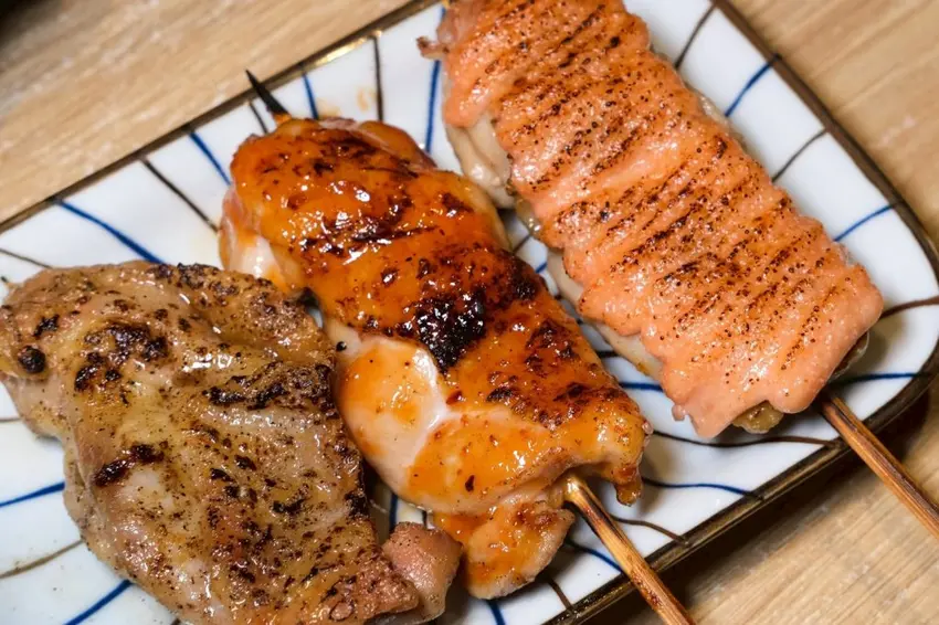鹽烤雞肉串💰60元 照燒雞肉串💰60元 明太子雞腿肉串💰75元 豬肉蘆筍(2串)💰120元