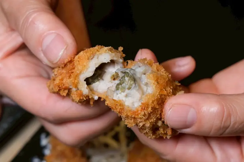 ▼咬下會爆汁的廣島炸牡蠣,外酥內嫩口,整個牡蠣鮮位在嘴裡炸開好爽~