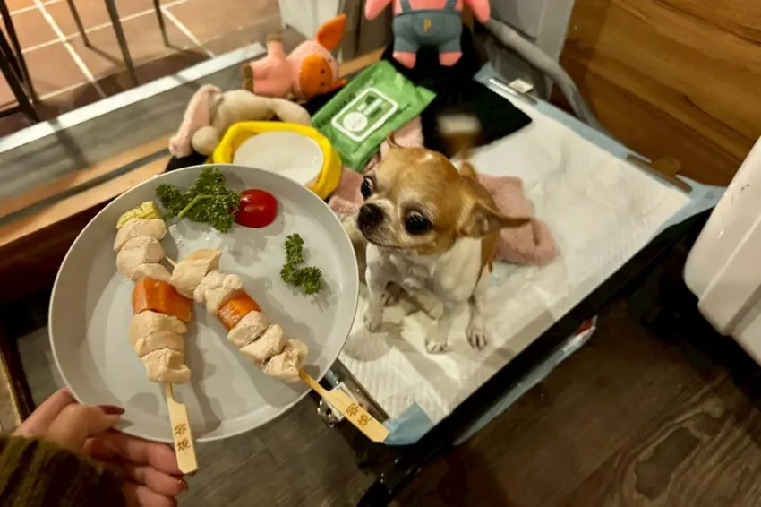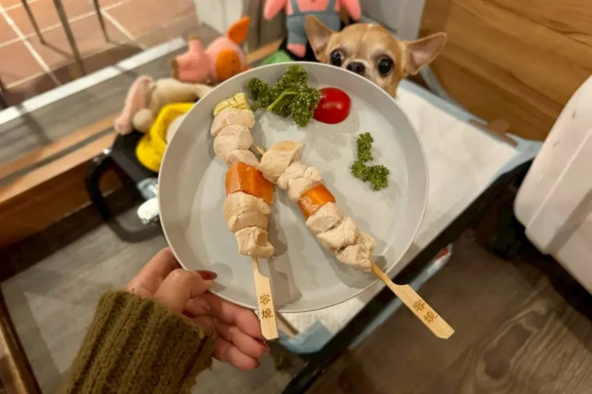 ▼【容燒居酒屋】來這裡有機會遇見可愛的狗店長,也可以帶自己的毛小孩一起用餐,還有貼心為狗狗準備專屬串燒(110元),嚴選雞胸清肉加上當季新鮮時蔬,不添加任何調味很健康,讓主人毛孩都能一起同樂!