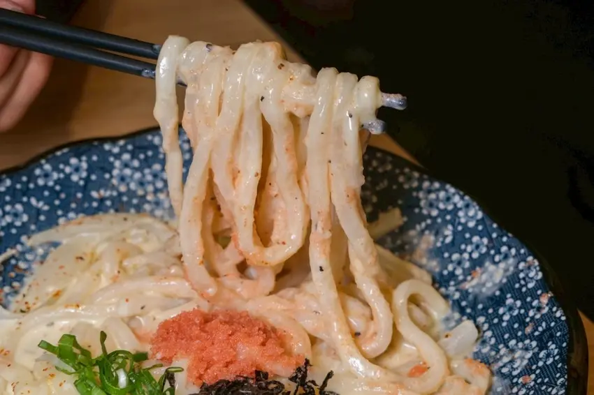 ▼濃郁到不行的明太子奶油烏龍麵,濃香的奶油醬緊緊巴著Q彈麵體,還有明太子鮮香點綴好加分!