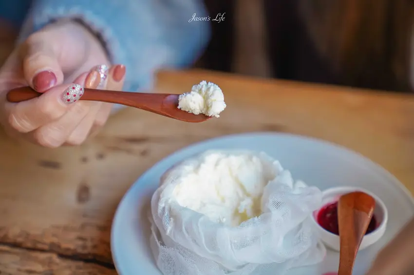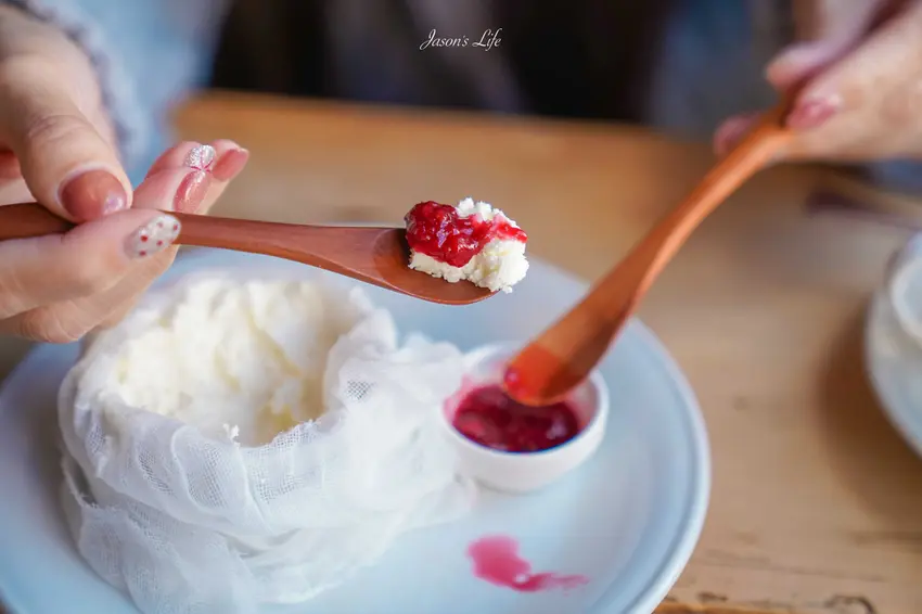 來到這裡,絕對必點定價 650 日圓的超人氣招牌「紗布起司蛋糕(レアチーズ)」。有別於傳統的烘烤做法,這款生起司蛋糕在上桌時會以純白紗布優雅包裹,造型極具特色。輕輕剝開紗布,裡頭是宛如慕斯般輕盈細緻的乳白色糕體。入口瞬間便能在舌尖化開,散發出淡淡的乳香與微酸的清爽風味。建議先品嚐生起司的原味,再搭配一旁附上的酸甜莓果醬,豐富的層次感絕對令人回味無窮。