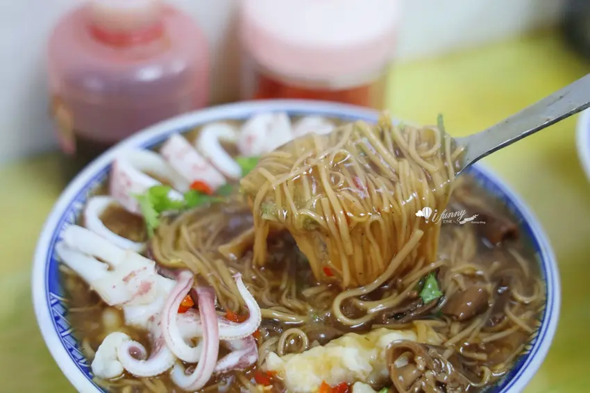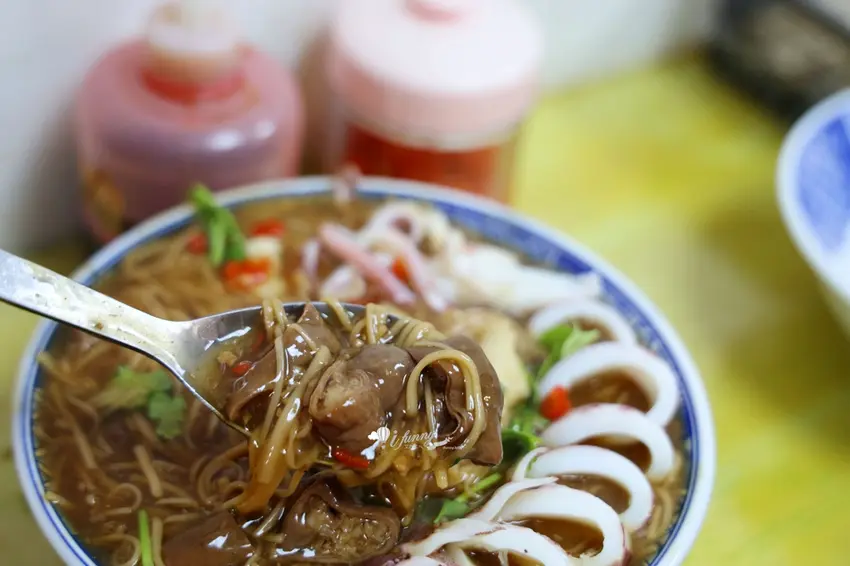 澎湃的配料是這碗麵線的靈魂所在。完整的一整隻小卷口感軟 Q 且鮮甜無比;魚羹的魚漿比例極高,咀嚼間散發出彈牙的鮮香。店家更特別選用大腸與小腸的「雙腸」組合,大腸滷得極度入味,帶有鹹香與扎實的嚼勁;小腸則呈現出香 Q 清爽的口感。每一口都能品嚐到不同食材交織出的豐富變化,令人大呼過癮。