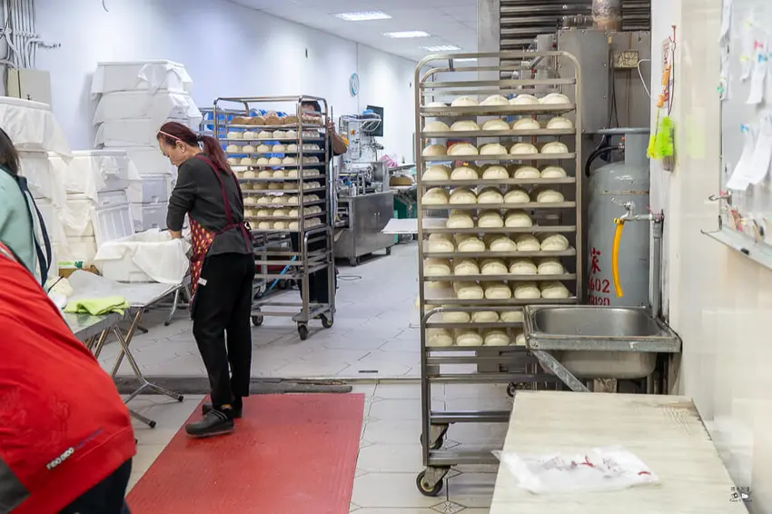 鬍鬚包子店的地理位置就在熱鬧的礁溪老街周邊,雖然沒有華麗醒目的招牌,但每到營業時間,店外總是大排長龍,跟著人潮走便能輕鬆找到。走近店面,半開放式的製作區與櫃檯,讓顧客能直接看見店員們雙手從未停歇地揉麵、包餡。在凡事講求機器量產的現代社會中,這樣堅持純手工捏製的傳統畫面,不僅讓人感到安心,更增添了一分令人懷念的古早味氣息。