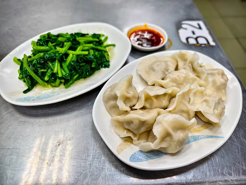 在主食之外,推薦點上一份價格親民的燙青菜(如燙菠菜),不僅能轉換味覺、適度解除肉類帶來的油膩感,更能均衡飲食攝取。此外,店家每日下午 15:00 起會開放販售「生鮮水餃」供顧客外帶。由於數量有限且極度搶手,必須事先領取號碼牌並嚴格遵守每人限購規定,有意購買生水餃回家烹煮的饕客務必留意時間,提早前往排隊以免向隅。