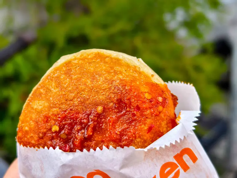 作為店內靈魂的「蘿蔔絲餅」,完美傳承了溫州街的經典手藝。煎至極度薄脆的餅皮,一口咬下便會發出清脆的咔嚓聲,且瀝油確實、絲毫沒有油膩感。內餡豪邁地包入了滿滿的純白蘿蔔絲,熟度掌握得宜,調味走的是清淡純粹的路線,讓顧客能完整品嚐到白蘿蔔本身的清甜與多汁。品嚐時,強烈建議搭配店家的特製辣醬一同享用,利用微辣的鹹香來襯托並放大蘿蔔的天然甜味,是令人回味無窮的絕佳組合。