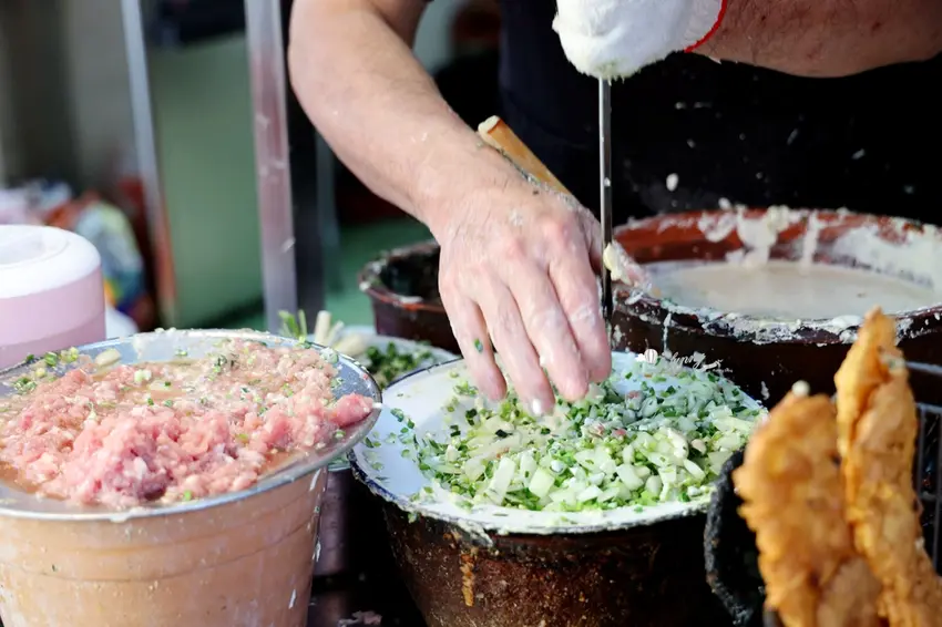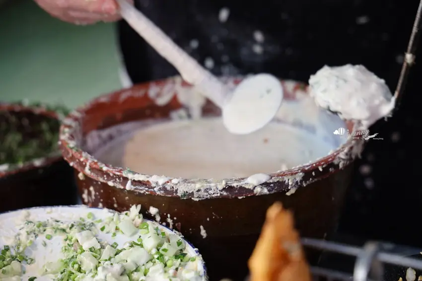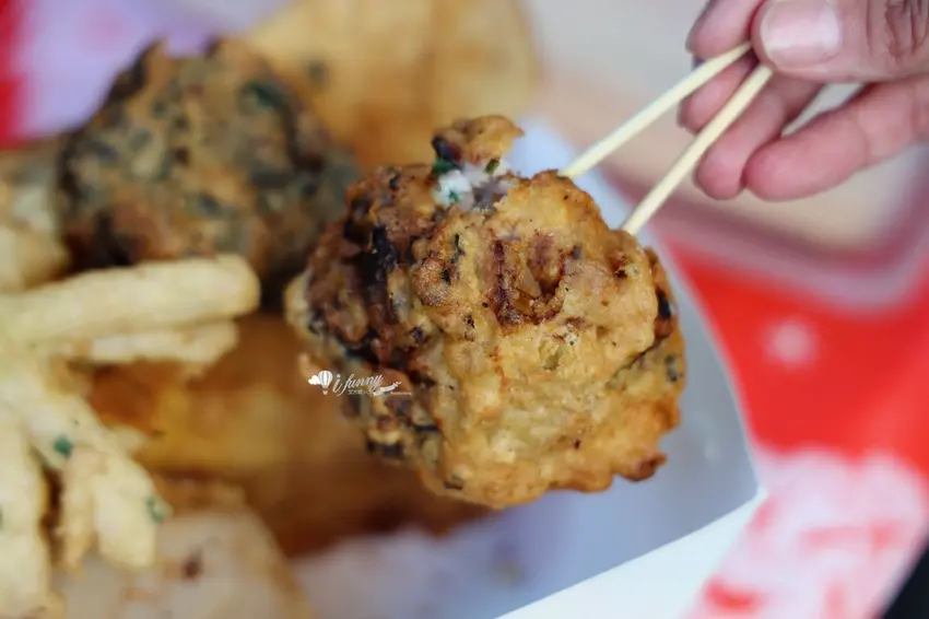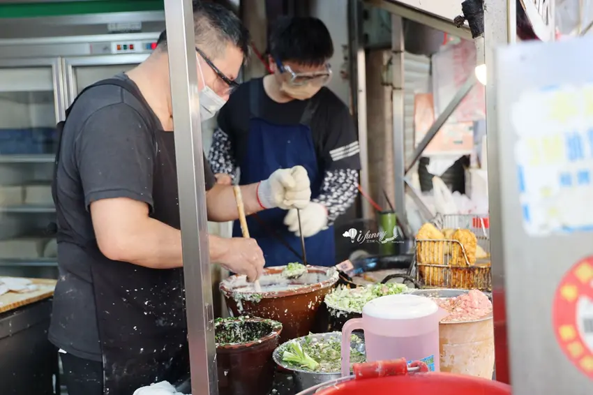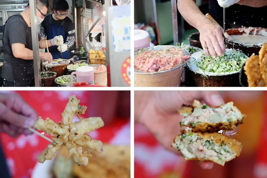 來到這裡,絕對不能錯過店家特製的雙招牌。有別於市面上常加入高麗菜的作法,這裡的「蚵仔嗲」與「肉粿」僅以純粹的蔥末與洋蔥丁作為基底,搭配特製的小巧模具下鍋油炸。定價僅需 15 元的蚵仔嗲,外皮極度薄脆,內餡包裹著鮮嫩的微型蚵仔,軟香可口;而招牌「肉粿」則包入鮮甜的豬肉餡,大口咬下時,豐盈的肉汁與洋蔥的爽脆感在口中完美交織,令人回味無窮。