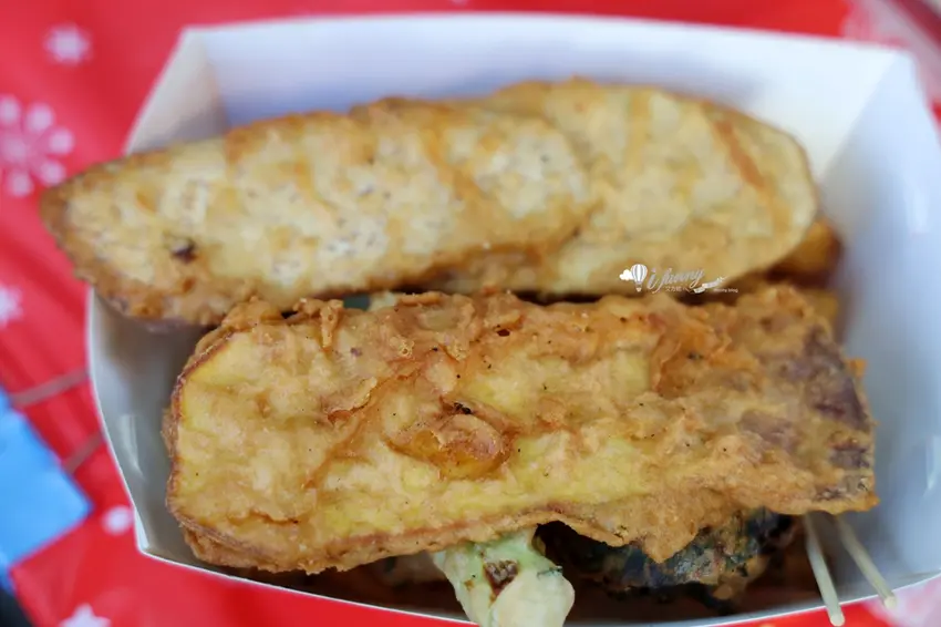 若想來點微甜的收尾,獨特的「米糕」是完美的餐後甜點。這款甜味米糕將軟糯的糯米裹上輕薄米漿炸至金黃,吃起來帶有宛如炸年糕般的 Q 彈口感與迷人糯香。而只要 15 元的「地瓜片」與「芋頭片」,皆採用原塊厚切直接掛漿油炸。地瓜片外殼極脆、內裡乾鬆綿密且帶有自然甜香;芋頭片則口感扎實飽滿,搭配店家提供的微辣甜辣醬一同享用,更能吃出多層次的豐富古早味。