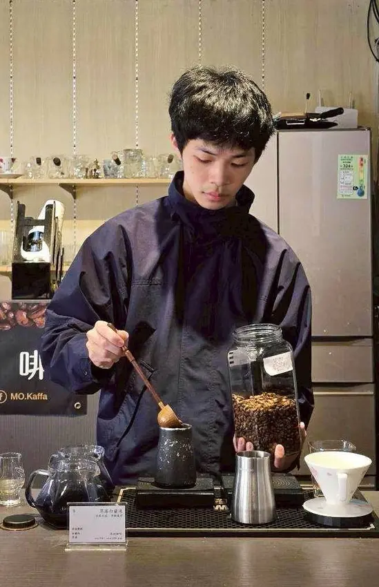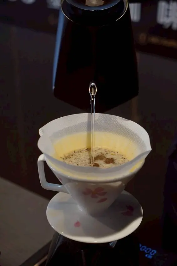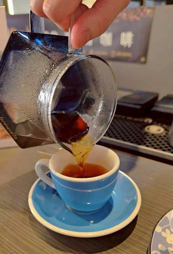 經過一輪介紹之後,小涼最後選了這支「天堂92藝妓」。這款咖啡豆來自哥倫比亞,從生豆到烘焙都是由店家親自處理,再到現場研磨、手沖,每一個步驟都很講究。老實說,看著店家專注在手沖咖啡的過程,真的會忍不住多看幾眼(笑)那種穩穩控制水流、節奏的畫面,莫名有點帥?