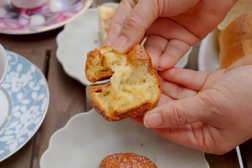 熱熱的吃時,外層酥脆帶香,一咬下去內裡柔軟帶 Q 彈,口感層次豐富又討喜。