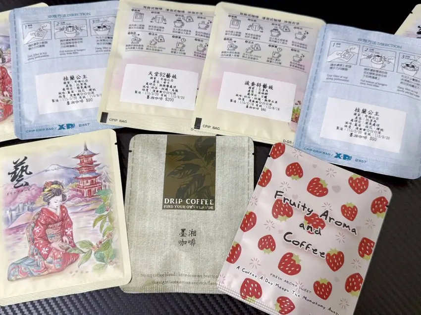 沒時間到苗栗也沒關係!墨湘咖啡的濾掛咖啡讓你在家也能輕鬆享受招牌咖啡香。小涼這次帶回天堂92藝妓、桂蘭公主和草莓蜜糖,每一包都是現場風味的濃縮版,只要熱水沖一沖,就能立刻沉浸在墨湘的咖啡世界裡!