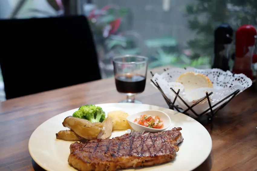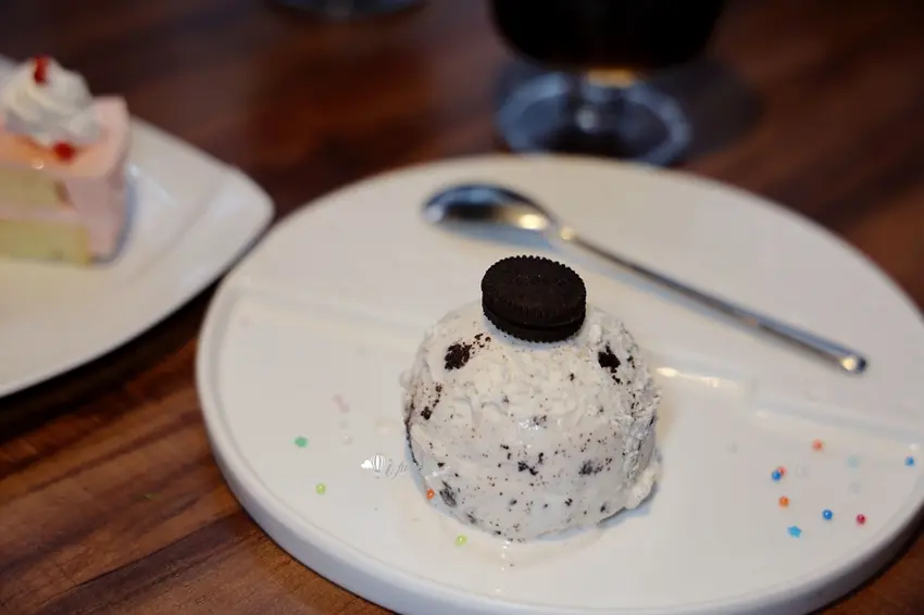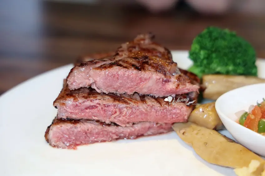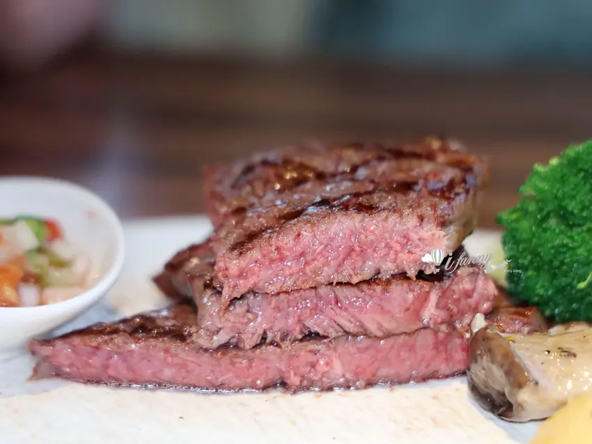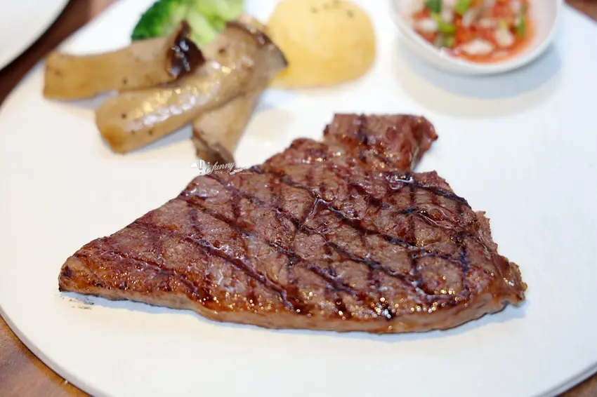 若追求更細緻的口感,定價 1080 元的「A5 日本和牛臀心(8oz)」絕對能帶來極致的奢華享受。臀心位於牛隻後臀,屬於相對稀有的瘦肉部位。店家挑選的肉品擁有宛如大理石般細緻均勻的油花,入口即化卻完美保留了瘦肉的甜味與軟嫩,徹底打破了 A5 和牛容易膩口的刻板印象。搭配店家提供的海鹽與手工莎莎醬一同品嚐,莎莎醬中番茄與洋蔥的酸爽清脆,能瞬間中和和牛濃郁的油脂感。餐後甜點則提供冰淇淋、蛋糕及奶酪等選項,為這頓高質感的炭烤牛排饗宴畫下完美句點。