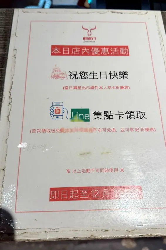 「亨利客原味炭烤牛排」主打不收服務費的直火炭烤技法,更有超狂的當日壽星 6 折優惠,是極具性價比的約會與慶生首選。