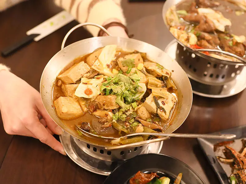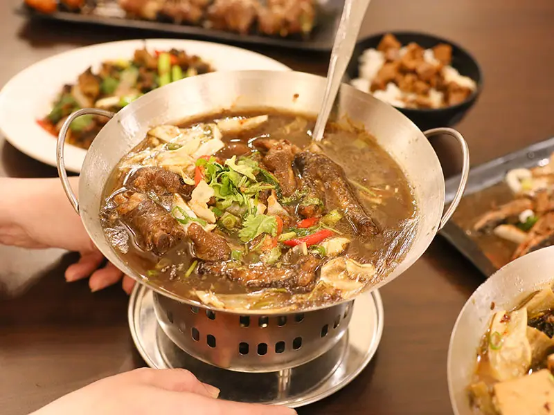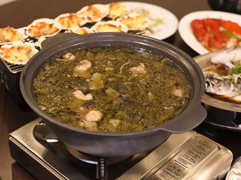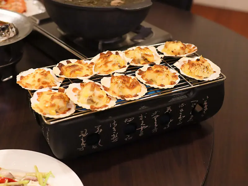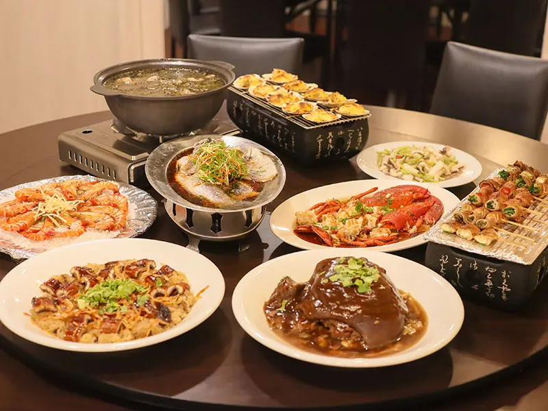 除了單點快炒與串燒,酒筒居酒串亦針對多人聚餐推出豐盛的合菜套餐。內容涵蓋蒜泥波士頓龍蝦、炭火綜合串燒、焗烤起司扇貝、蒲燒鰻油飯與份量驚人的筍乾滷蹄膀等多道大菜,色香味俱全。作為一間營業至凌晨 1 點的深夜食堂,這裡完美融合了台式熱炒的熱鬧與日式居酒屋的放鬆,不論是下班後的微醺時光,或是深夜臨時起意的飽餐一頓,都是新竹市區極具實力與便利性的口袋名單。