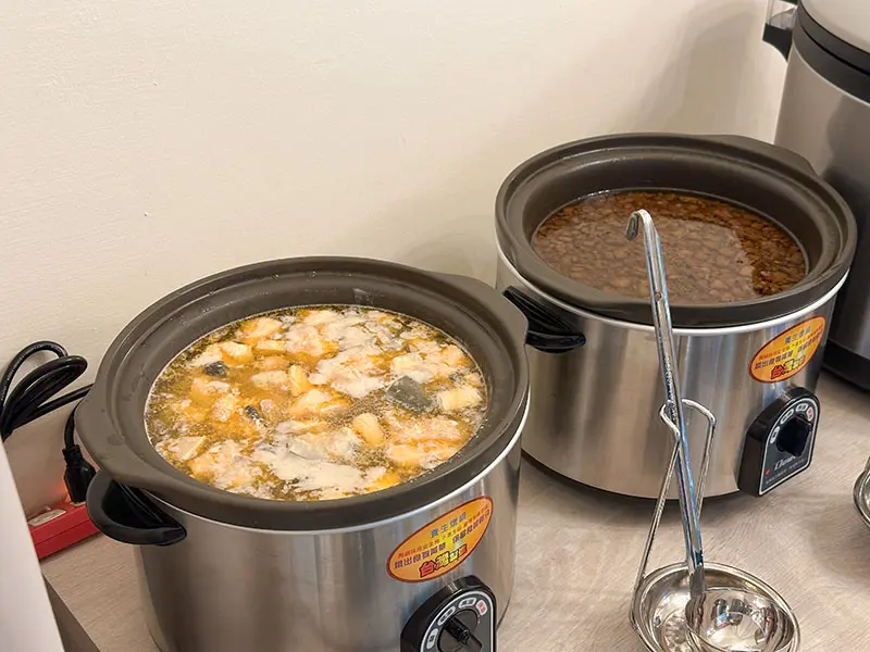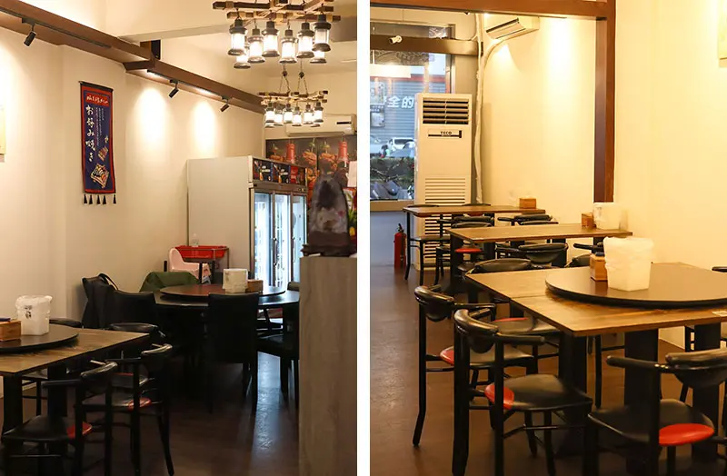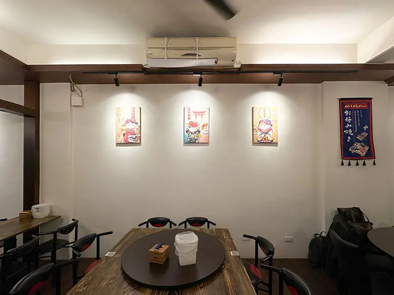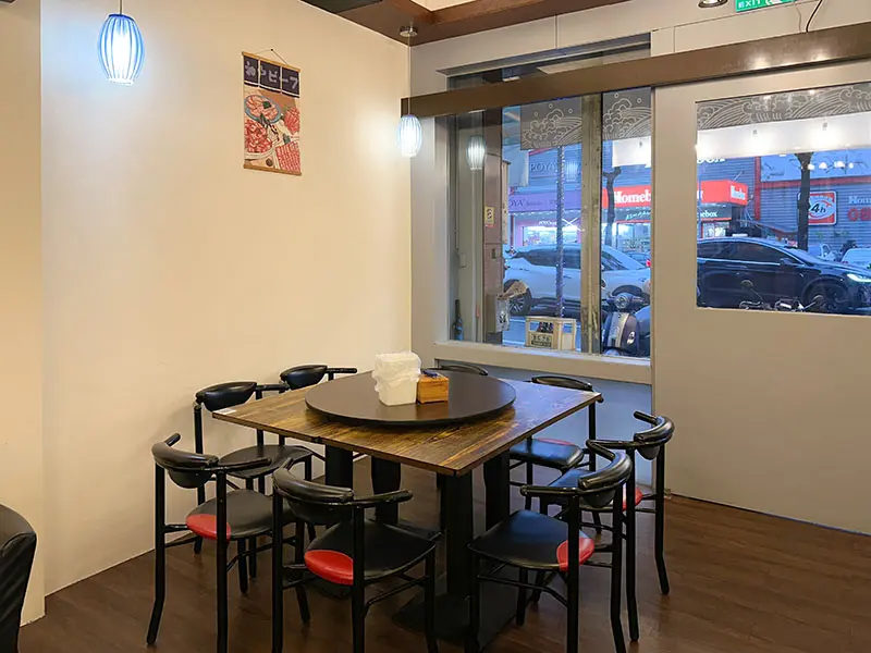 酒筒居酒串的地理位置極佳,對面即是新竹人熟悉的 HOMEBOX,轉彎處便設有停車場,大幅省去了在經國路上尋找車位的困擾。店內 1 樓空間寬敞明亮,以簡約舒適的日式畫作點綴,備有適合 4 至 8 人的座位區,用餐氛圍輕鬆不過度拘謹。若有家族聚餐或大型聚會需求,2 樓更特別規劃了專屬的包廂空間,確保隱私與歡聚品質。此外,店內的自助區提供滿滿配料的鮭魚味噌湯與濃郁的滷肉飯,霸氣開放免費無限量享用,展現了店家十足的誠意。