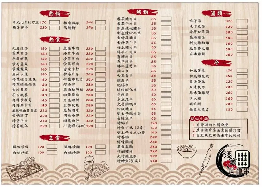每到深夜,想要找一間能同時滿足熱炒與串燒胃口,又不必煩惱停車問題的居酒屋,「酒筒居酒串」完美解決了新竹夜貓族的痛點。店面座落於經國路二段,鄰近牛埔方向,周邊即有便利的停車場。這裡不僅提供極具鑊氣的經典台式快炒、選擇豐富的日式串燒,更藏有老闆精心研發的私房隱藏菜色。最令人驚豔的是,只要入座點餐,便能免費享用誠意滿滿的鮭魚味噌湯與香濃滷肉飯。無論是三五好友的深夜小聚,或是預訂 2 樓包廂舉辦家族合菜聚餐,這裡皆能提供舒適愜意且極具水準的餐飲體驗。
