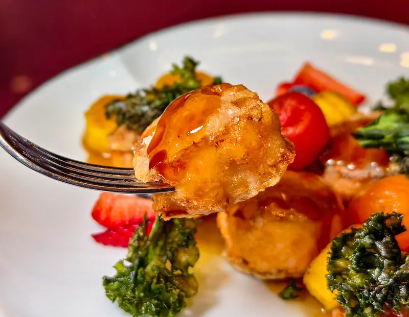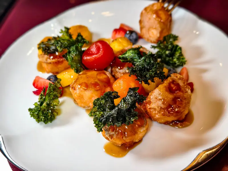 鳳梨蝦滑蓮藕餅,精緻黃花魚捲清甜