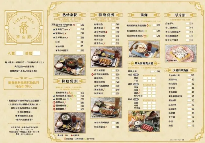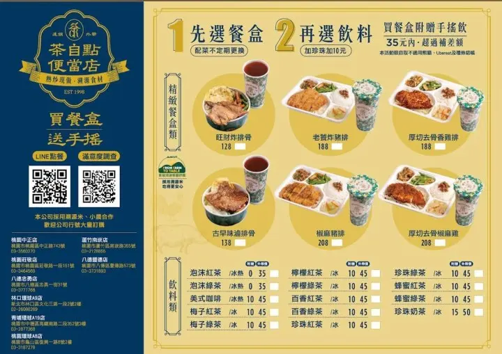 茶自點在地深耕二十餘年,以泡沫紅茶兼賣熱炒套餐的經營模式,在桃園開設第一家店(中正店),目前全台分店持續拓展中。然而距離我更近的則是這家莊敬店,不僅有供消費折抵的停車場,還有免費的wifi及插座,有攜老帶幼的、成群的學生族、商務洽談…等等,更以中國風的裝潢以及童趣十足的鞦韆椅吸引了各個年齡層,不僅能吃飽也能吃巧,可說是親朋好友聚會的首選地。