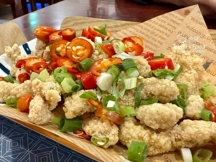 我們總說茶自點的椒鹽豬里肌比起一般的鹽酥雞又來得更涮嘴,瞧那包裹在里肌肉外層的炸粉,不油不膩,用色澤判斷就知道油品乾淨,拌著青蔥與辣椒,搭配著白飯一口接一口,享受啊~
