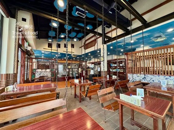 莊敬店的空間大,座位數多且寬敞,全店使用木製桌椅與隔間,營造出濃濃的中國古典風格。